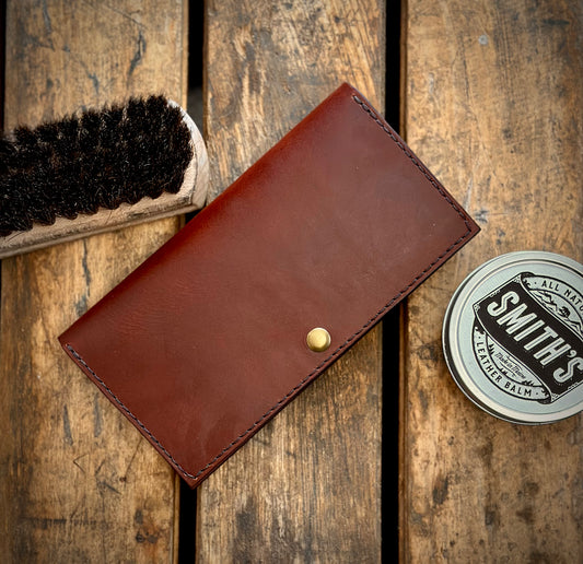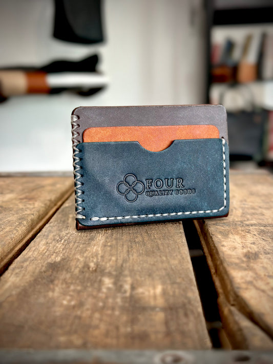 Our 100% handcrafted wallets are made with 3-4 oz. vegetable tan full grain leather. Each wallet is hand stitched with waxed thread and finished with dyed and burnished edges.