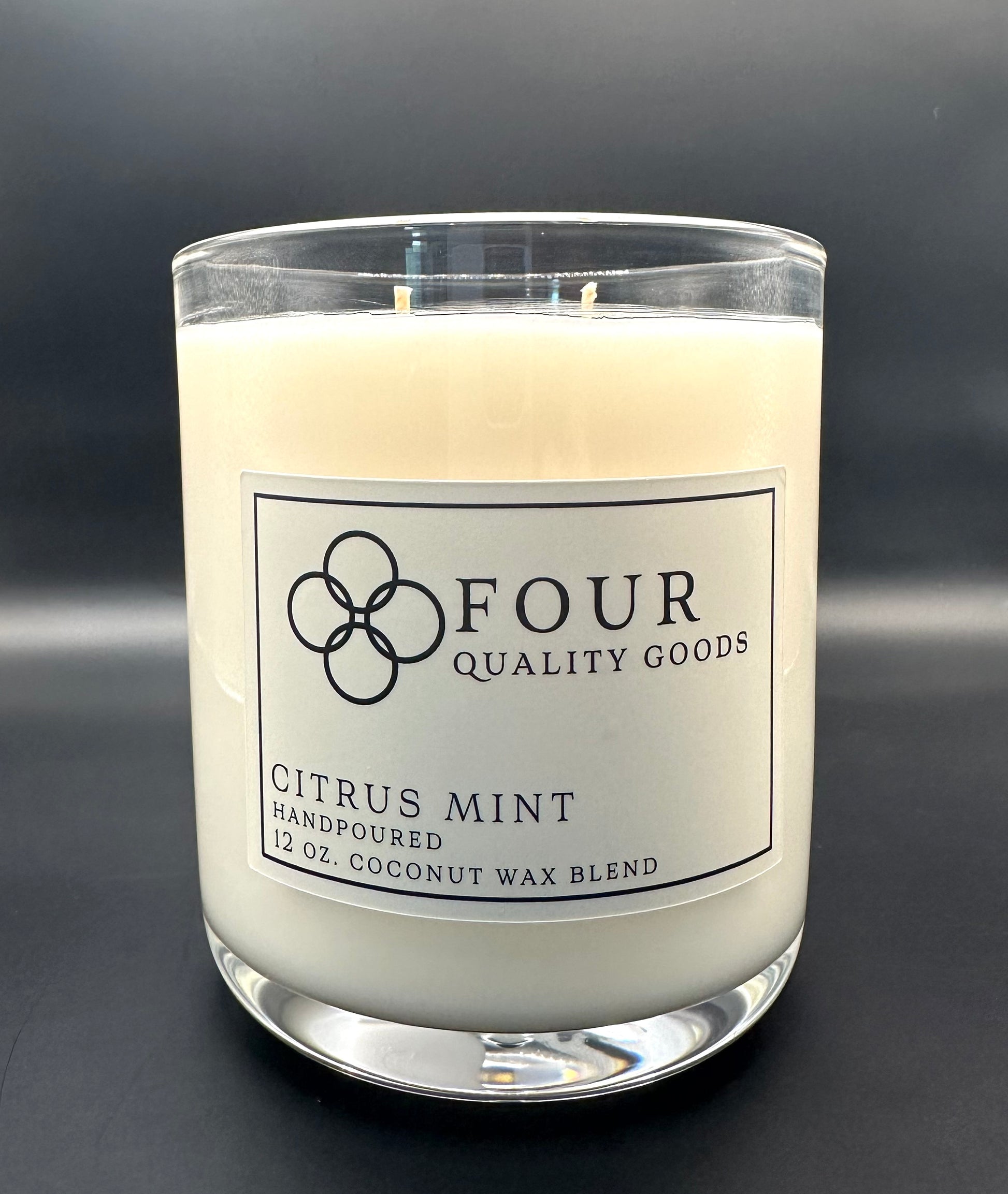 Citrus Mint - Light up your room with a zesty blend of lemon, lime, and a mint aroma! Our Citrus Mint candle will submergfe you in a tropical oasis of your dreams. Feel refreshed with each breath and let the aroma drift you away!