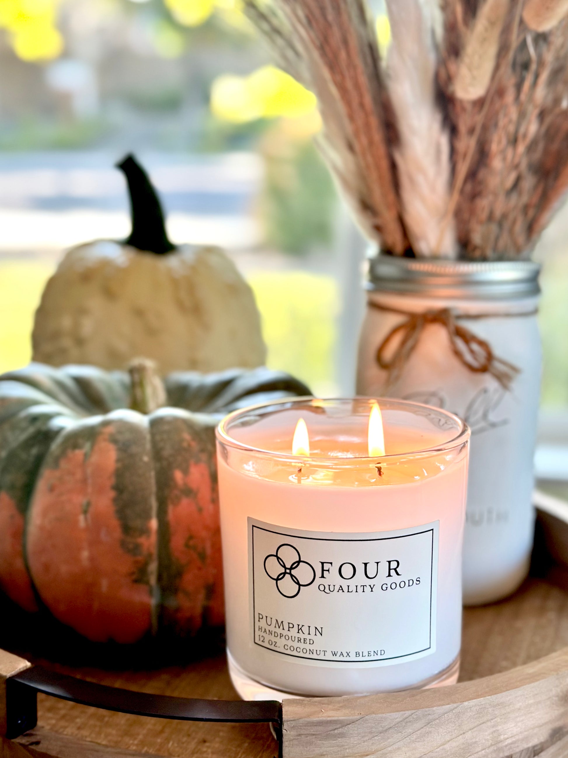 Pumpkin - This delightful candle will fill your home with comforting fall scents of pumpkin, cardamom, clove, cinnamon, and spice. Cozy up your space with all the warm notes this candle will bring!