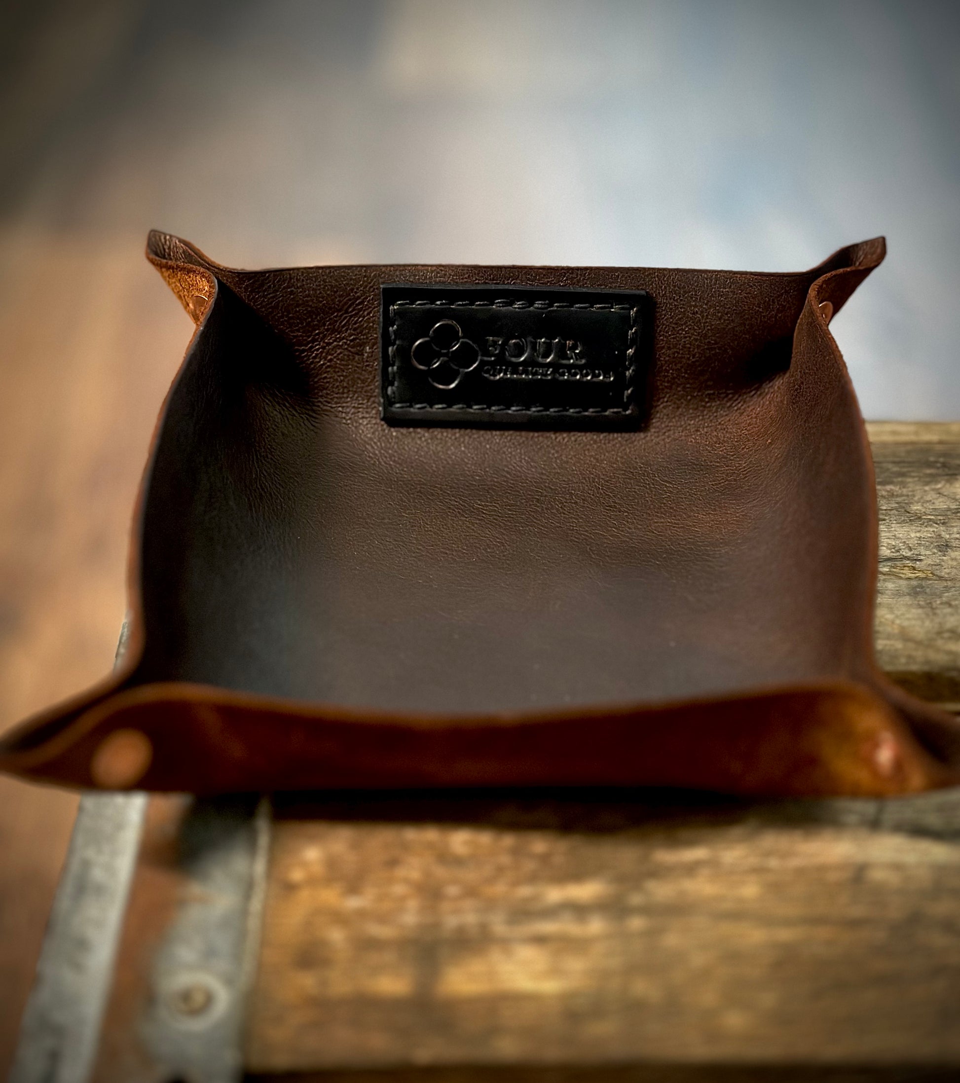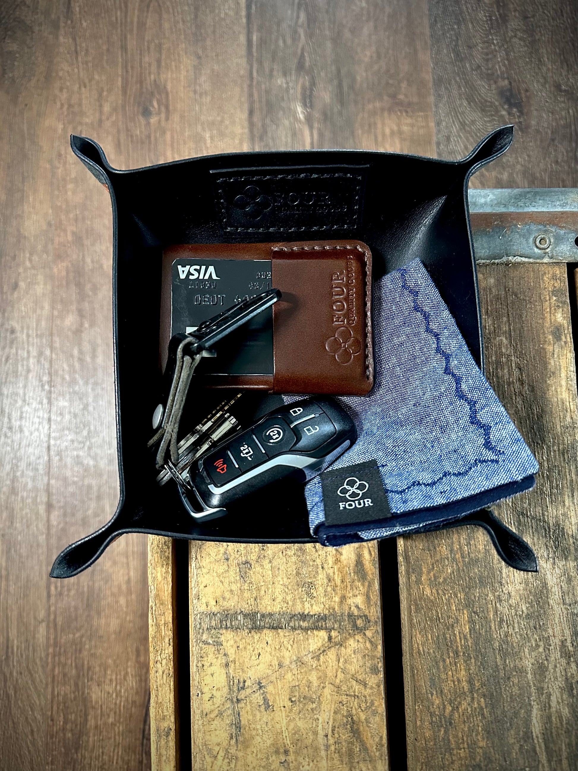 Keep your daily essentials organized and within reach with our Valet Tray. Handcrafted with full-grain leather, it's a catch-all for your keys, phone, and wallet. Say goodbye to frantically searching for misplaced items and hello to convenience and style. All of our leather products are "made to order," please check lead times at the top of the home page prior to ordering.